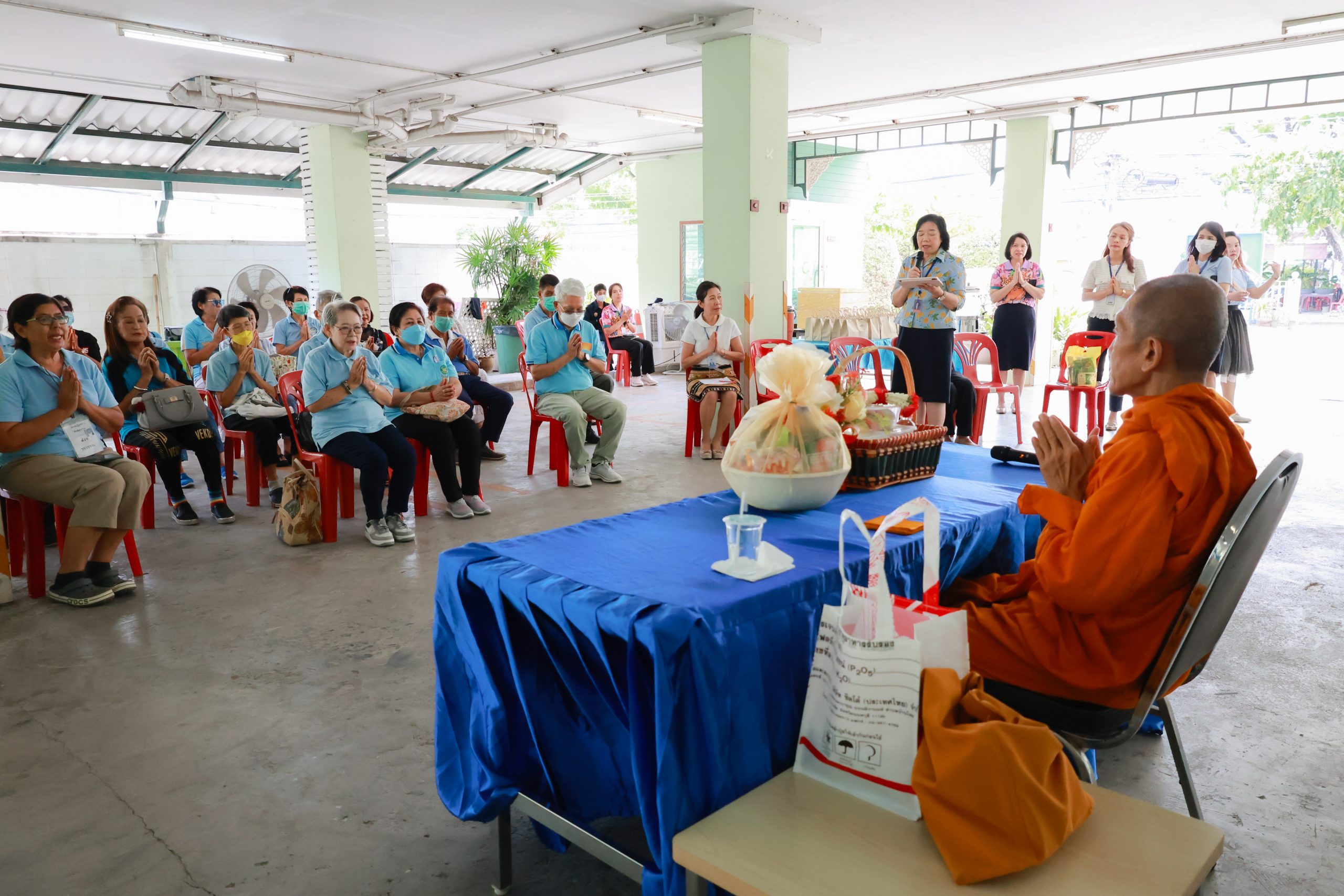 เมื่อวันที่ 5 มิถุนายน 2568 ศูนย์การเรียนรู้และบริการสุขภาพในชุมชน (คลินิกพยาบาลชุมชนอบอุ่น) ร่วมกับภาควิชาการพยาบาลรากฐาน นำทีมโดยอาจารย์ลัดดาวัลย์ ไวยสุระสิงห์ รักษาการหัวหน้าภาควิชาการการพยาบาลรากฐาน และรองคณบดีฝ่ายแผนยุทธศาสตร์และการพัฒนา คณาจารย์จากภาควิชาการพยาบาลรากฐาน คณะพยาบาลศาสตร์อัครราชกุมารี ราชวิทยาลัยจุฬาภรณ์ จัดกิจกรรม เรื่อง “สูงวัย ไม่โดดเดี่ยว” บรรยายธรรมโดยพระครูนนทสังฆกิจจาพิมล (สุรศักดิ์ สุรญาโณ) ผู้ช่วยเจ้าอาวาสวัดชลประทานรังสฤษฏ์ โดยได้ให้ข้อคิดจากหลักธรรมนำไปในการใช้ชีวิตประจำวันอย่างมีสติและปัญญา