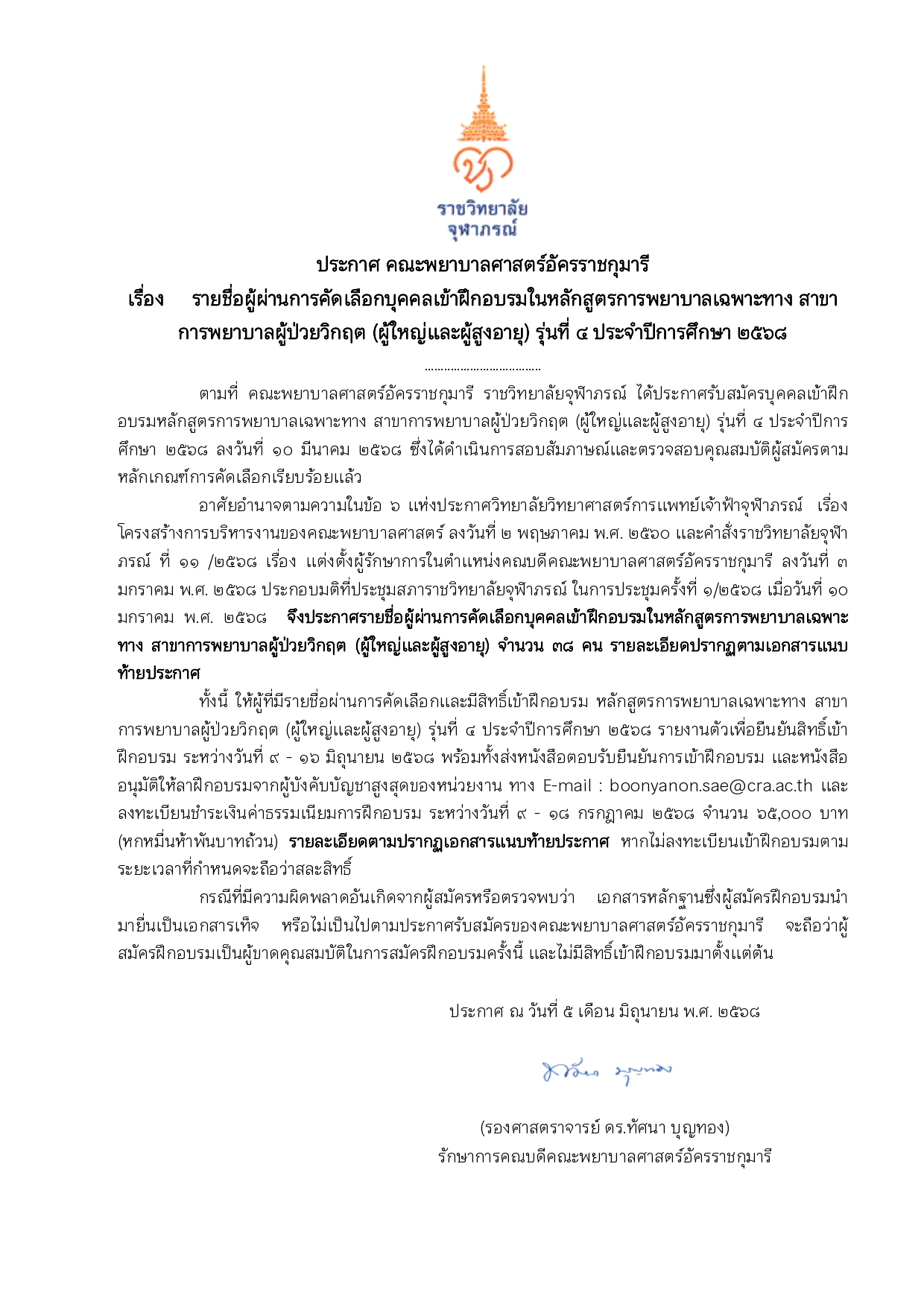 หนังสือยินยอมสิทธิเพื่อเข้ารับการอบรม