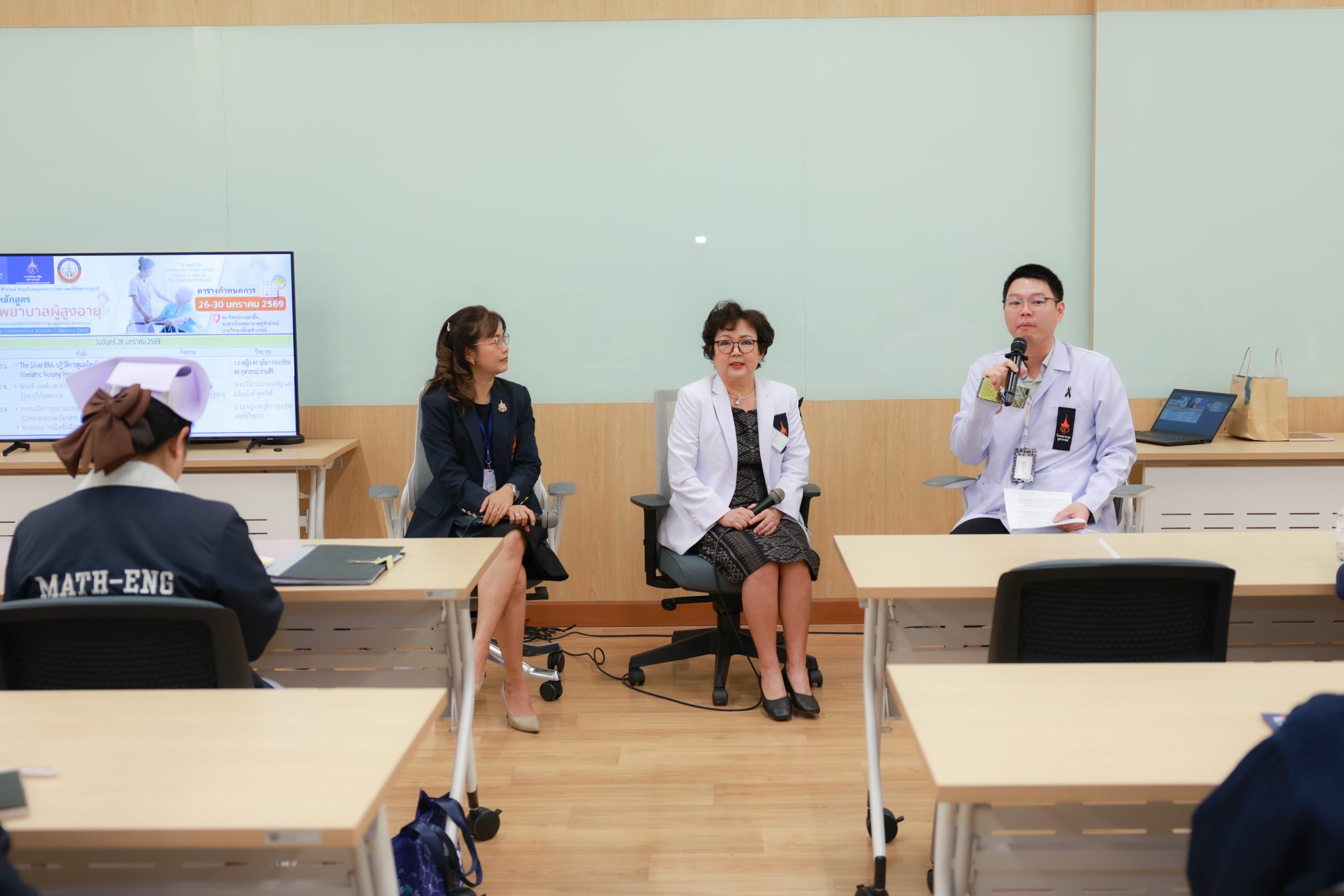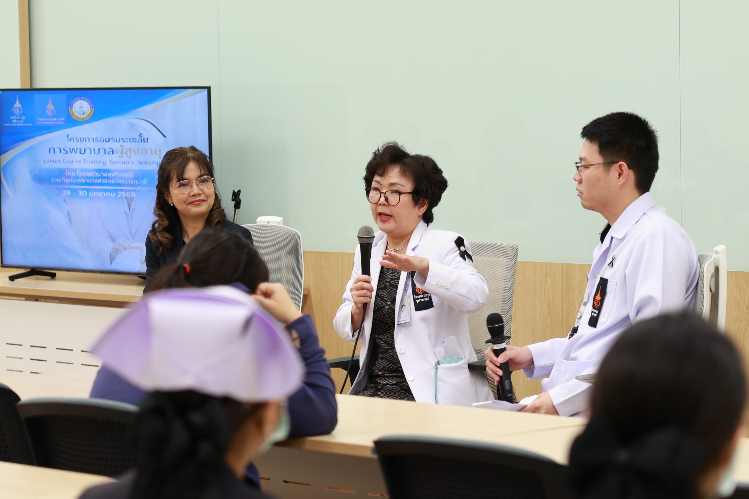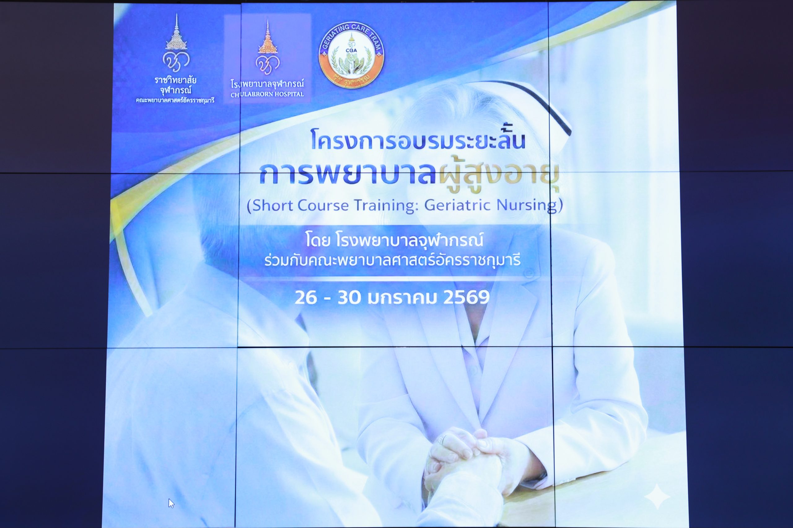 📢📢 คณะพยาบาลศาสตร์อัครราชกุมารี ร่วมกับ โรงพยาบาลจุฬาภรณ์ จัดโครงการอบรมหลักสูตรระยะสั้น การพยาบาลผู้สูงอายุ สำหรับพยาบาลวิชาชีพ เพื่อเพิ่มพูนสมรรถนะและสร้างทัศนคติที่ดีสำหรับการดูแลผู้สูงอายุในโรงพยาบาล จัดขึ้นระหว่างวันที่ 26-30 มกราคม 2569 ณ ห้องบรรยาย R-104 ชั้น 1 อาคารวิจัยและการเรียนรู้เฉลิมพระเกียรติ 60 พรรษา เจ้าฟ้าจุฬาภรณ์ ราชวิทยาลัยจุฬาภรณ์