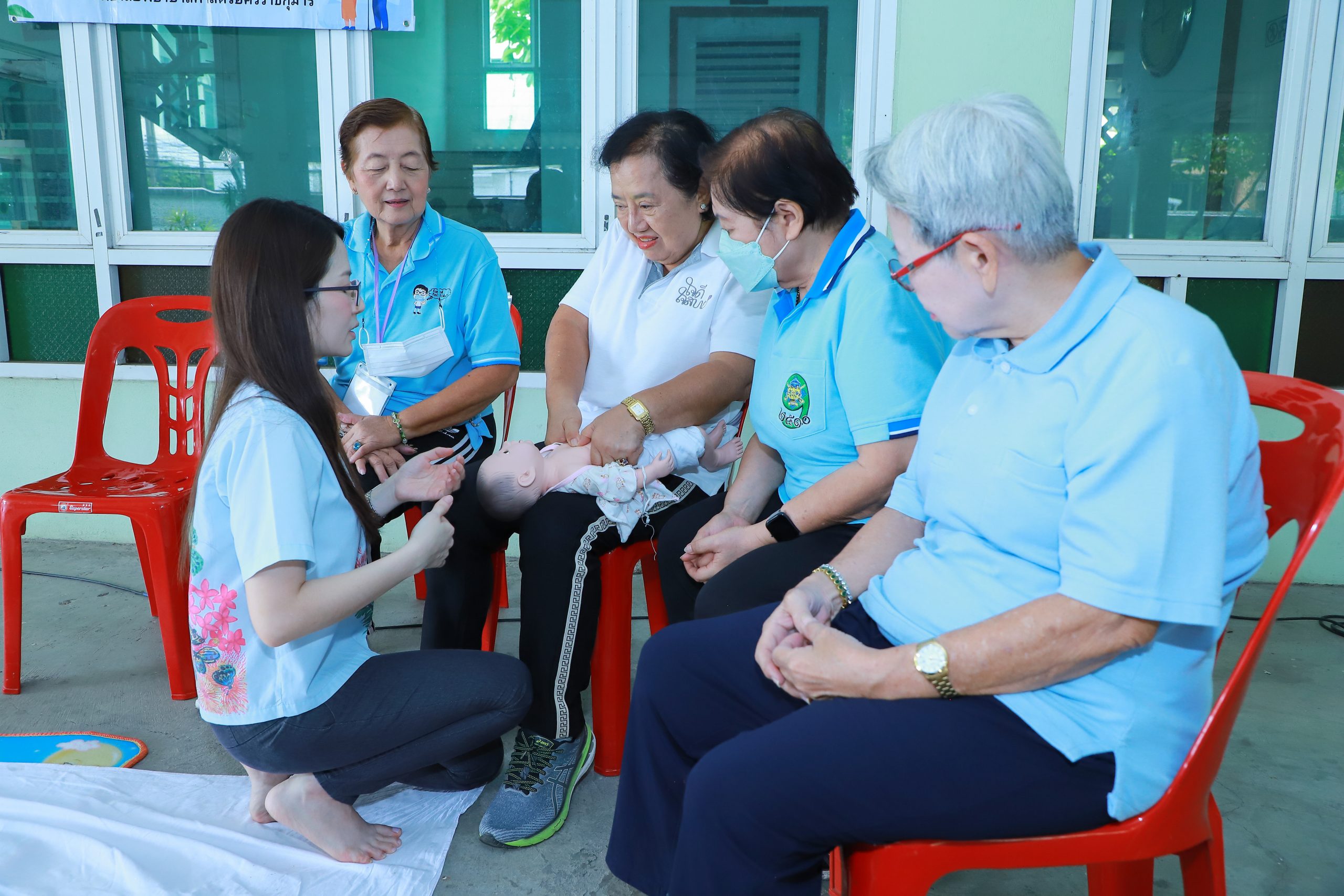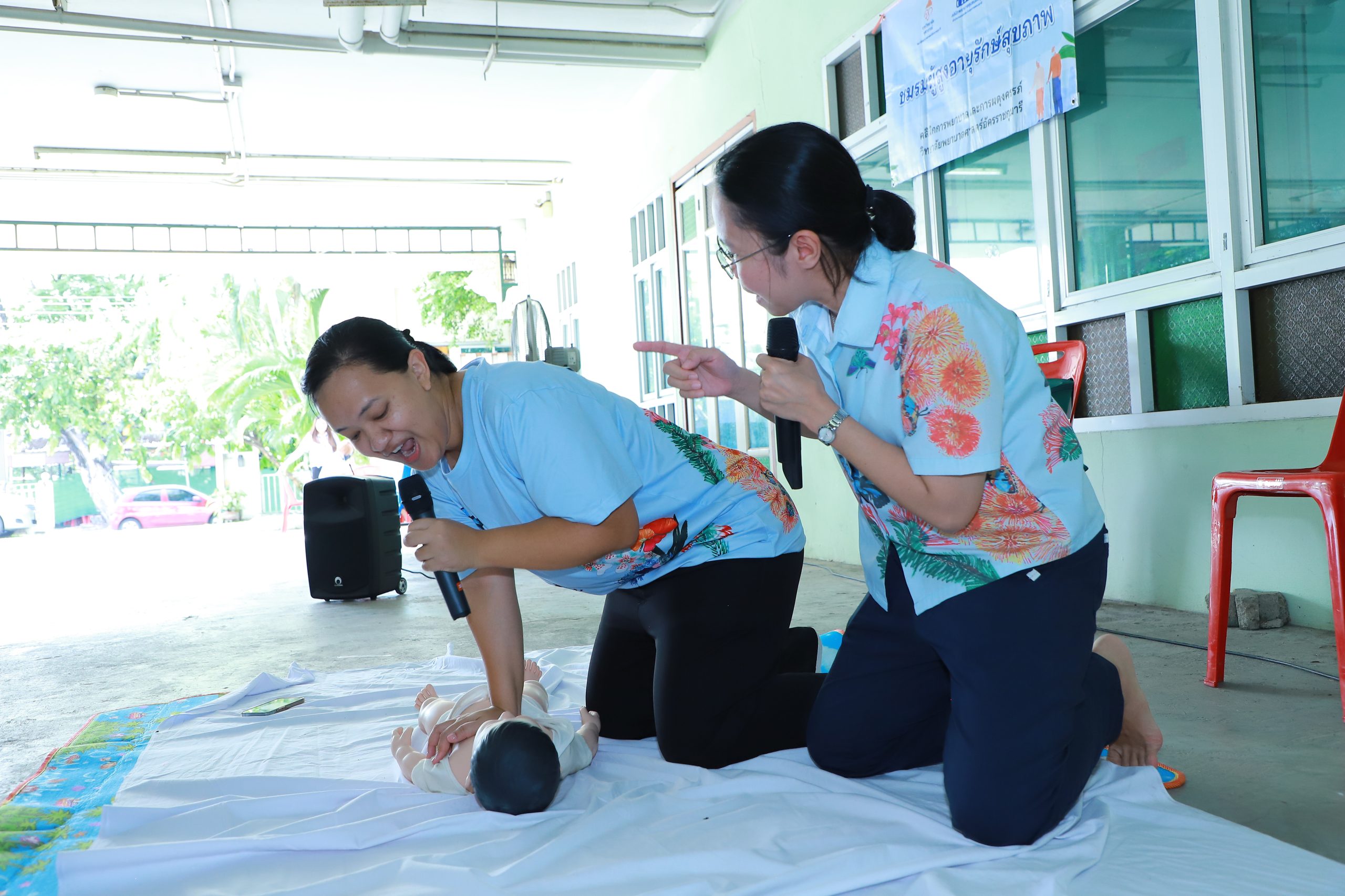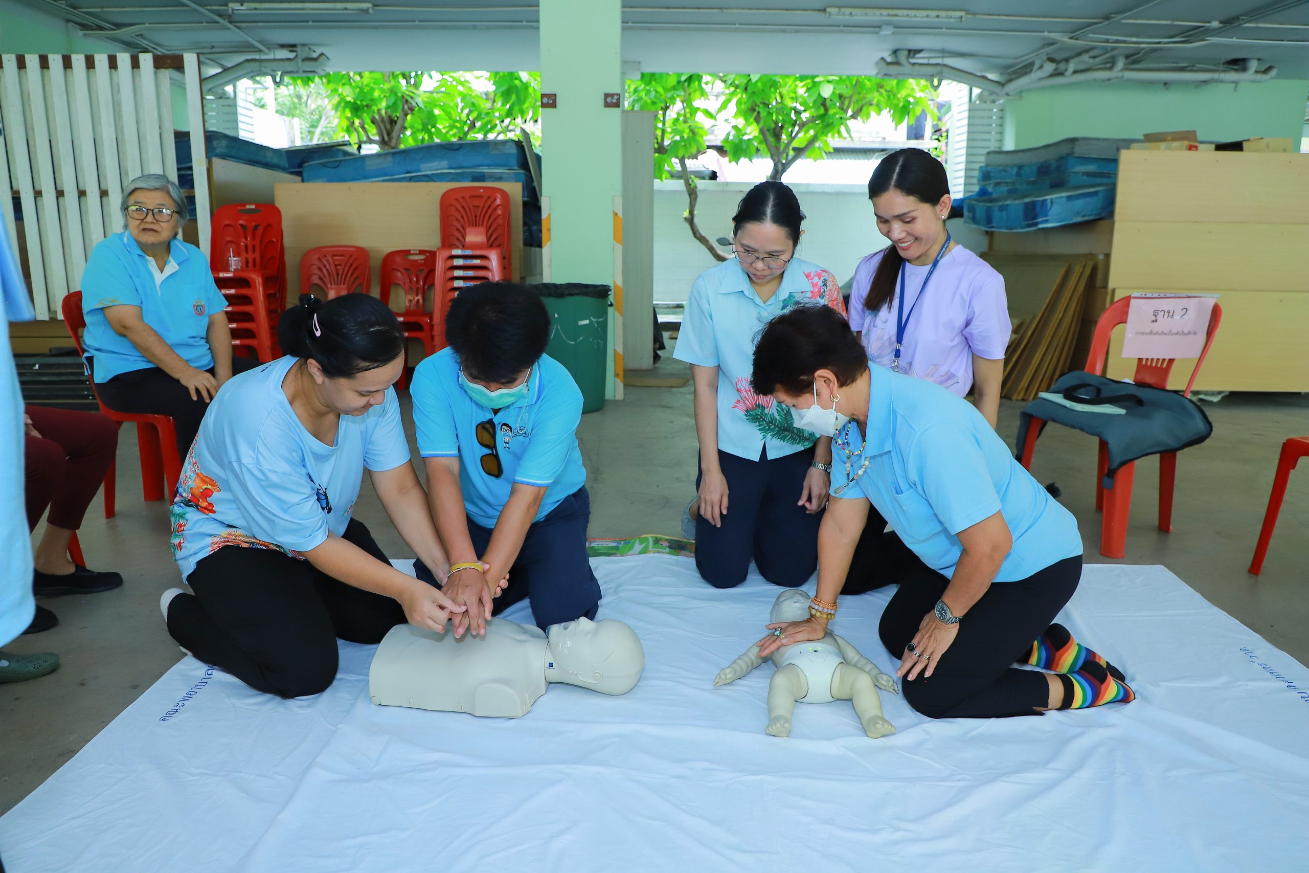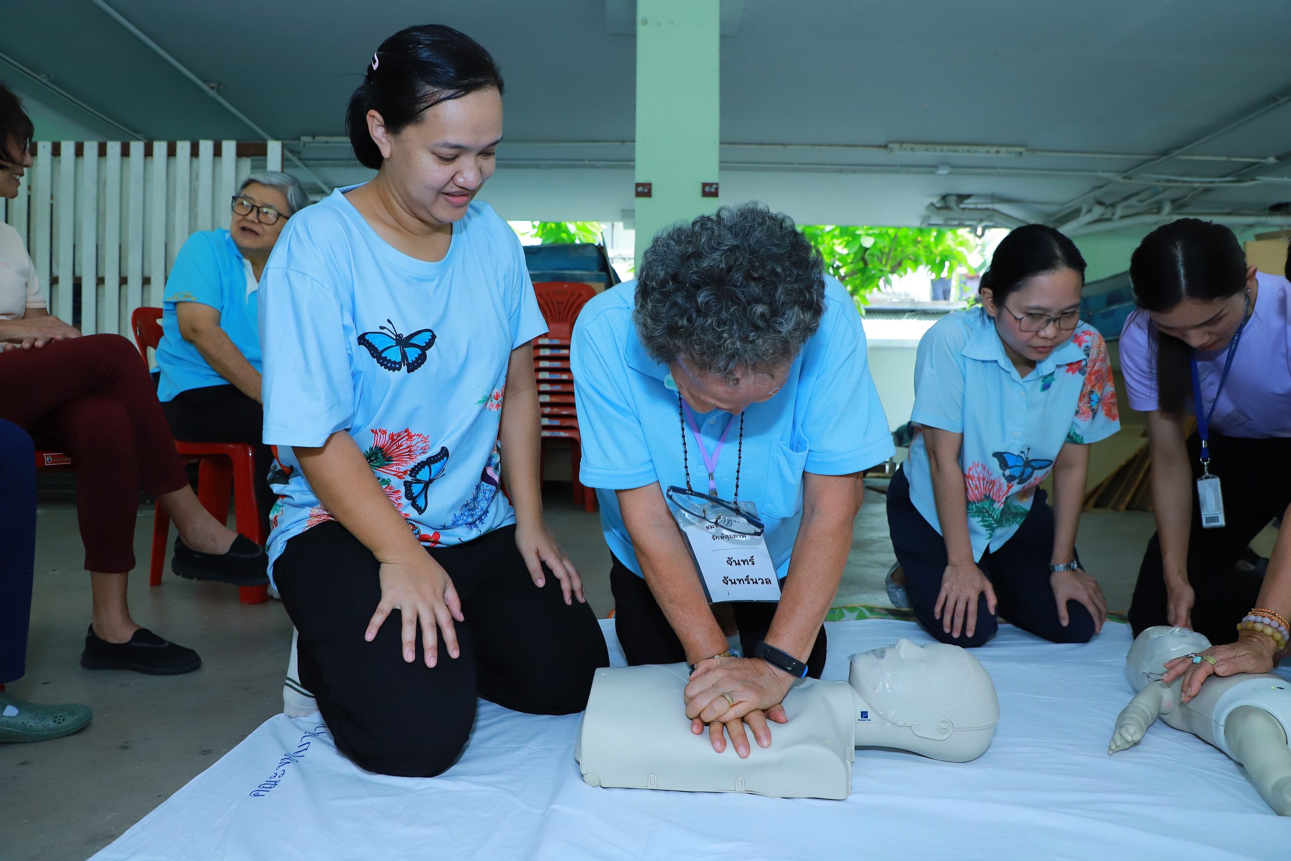 วันที่ 24 มิถุนายน 2568 ศูนย์การเรียนรู้และบริการสุขภาพในชุมชน (คลินิกพยาบาลชุมชนอบอุ่น) ร่วมกับภาควิชาการพยาบาลเด็กและวัยรุ่น นำทีมโดยรองศาสตราจารย์ สมพร สุนทราภา รักษาการหัวหน้าภาควิชาการการพยาบาลเด็กและวัยรุ่น คณาจารย์จากภาควิชาการการพยาบาลเด็กและวัยรุ่น คณะพยาบาลศาสตร์อัครราชกุมารี ราชวิทยาลัยจุฬาภรณ์ จัดกิจกรรม เรื่อง “CPR วัยเก๋าเราช่วยได้” กิจกรรมในครั้งนี้ช่วยส่งเสริมให้ประชาชนในชุมชน ได้รับความรู้และทักษะที่จำเป็นในการช่วยฟื้นคืนชีพขั้นพื้นฐาน (CPR) อย่างถูกวิธีและปลอดภัย เพิ่มความมั่นใจหากพบเหตุการณ์ฉุกเฉินภายในครอบครัวและชุมชนสามารถให้การช่วยเหลือเบื้องต้นได้อย่างทันท่วงที