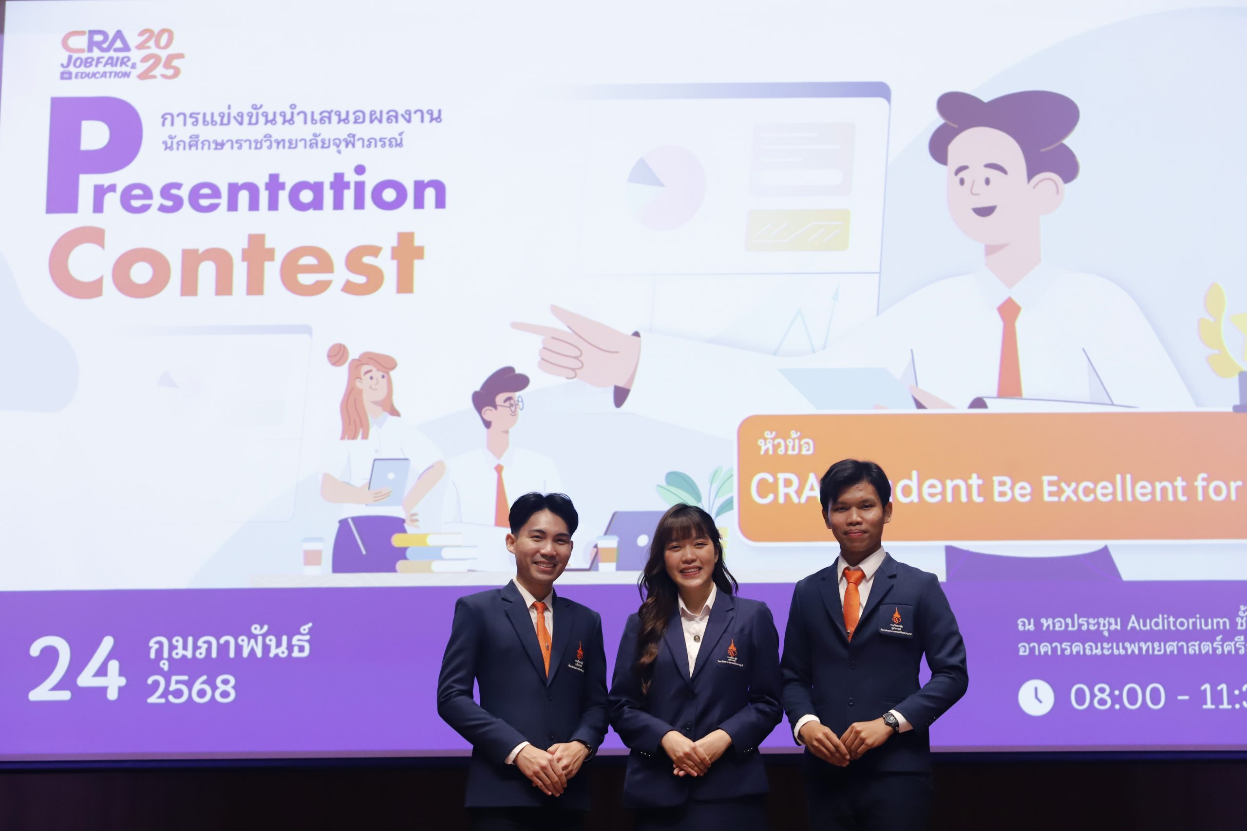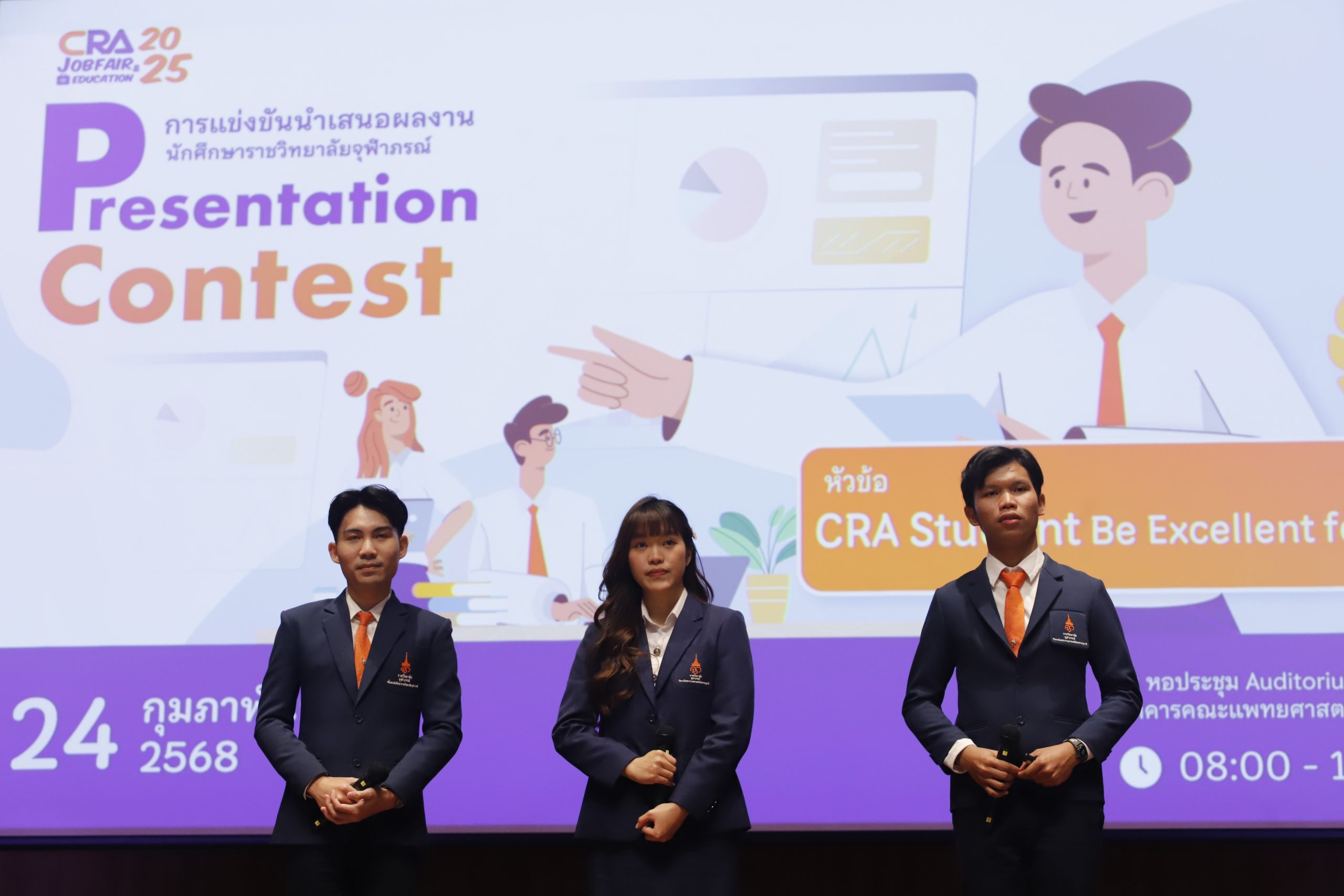 ราชวิทยาลัยจุฬาภรณ์ จัดการแข่งขันนำเสนอหลักสูตรและผลงานนักศึกษา ภายใต้โครงการ CRA Job Fair & Education 2025 นิทรรศการแนะแนวอาชีพและการศึกษาต่อสำหรับนักศึกษาราชวิทยาลัยจุฬาภรณ์