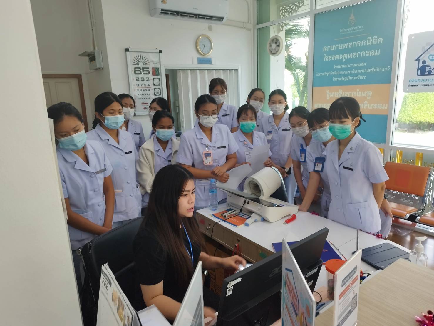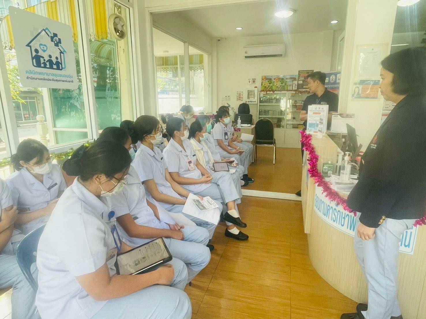 นักศึกษาหลักสูตรพยาบาลศาสตรบัณฑิต (หลักสูตรนานาชาติ) ชั้นปีที่ 4 จำนวน 16 คน เข้ารับการฝึกปฏิบัติ ณ ศูนย์การเรียนรู้และบริการสุขภาพในชุมชน (คลินิกพยาบาลชุมชนอบอุ่น) คณะพยาบาลศาสตร์อัครราชกุมารี