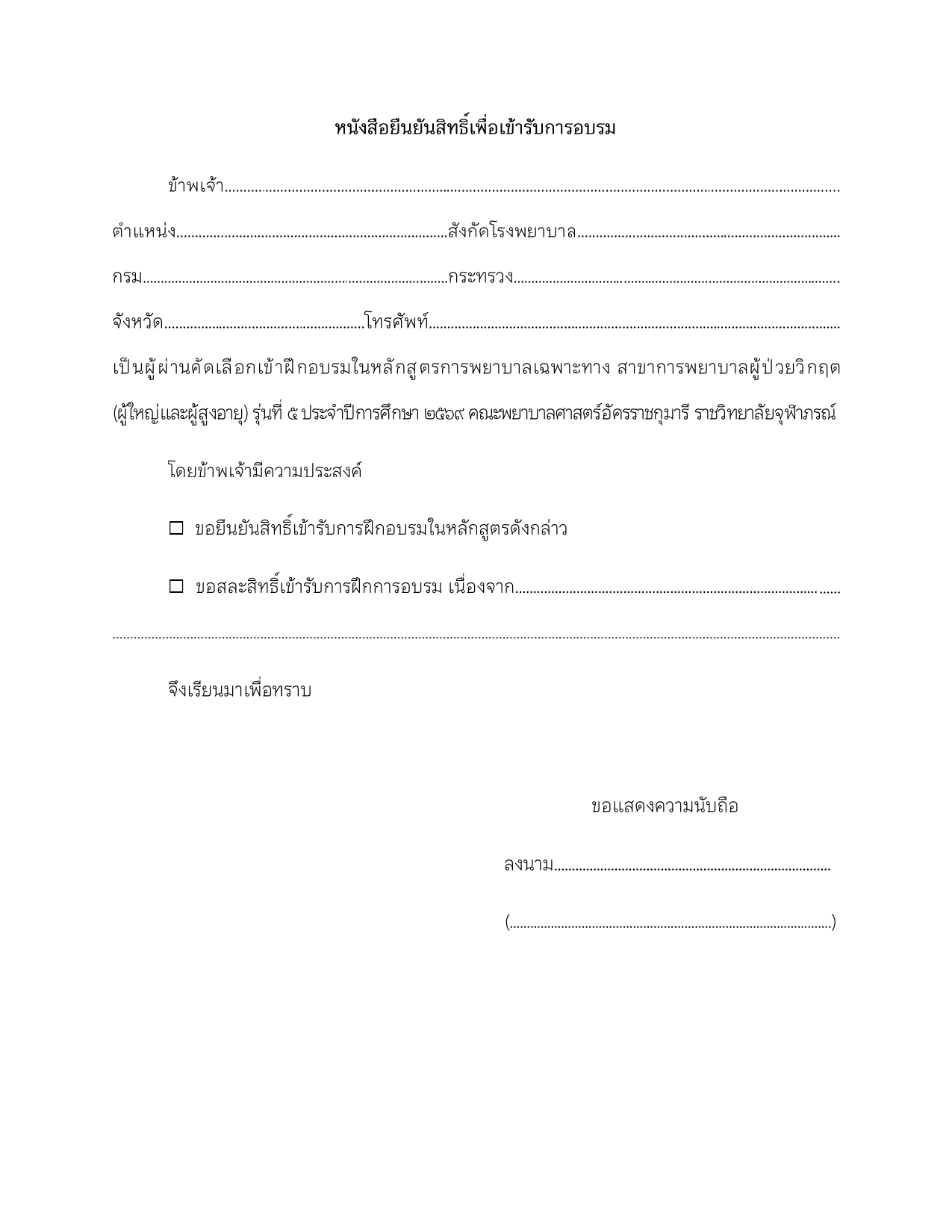 หนังสือยืนยันสิทธิ์เพื่อเข้ารับการอบรม