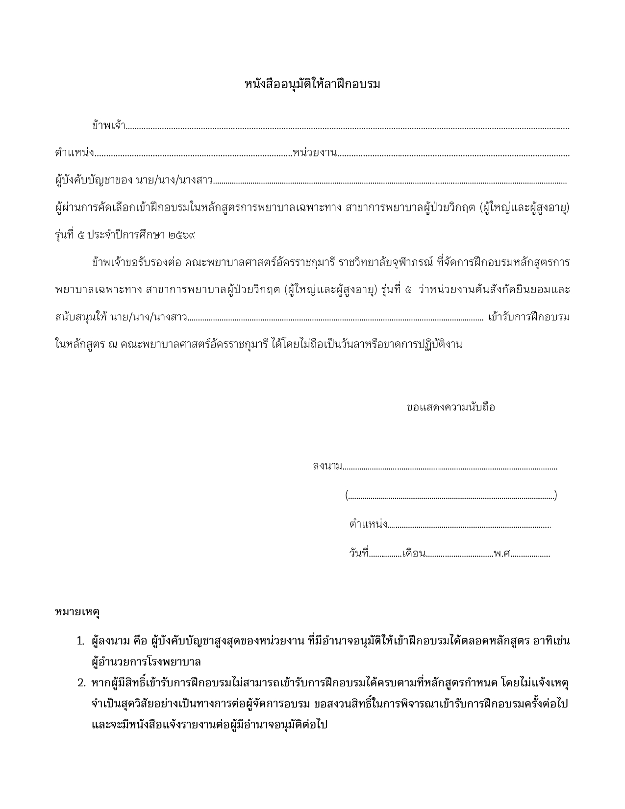 หนังสืออนุมัติให้ลาฝึกอบรม