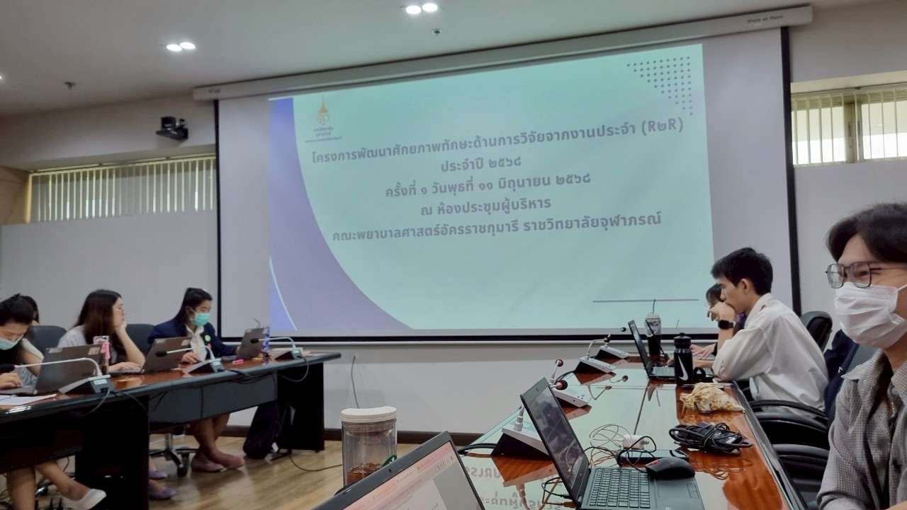 คณะกรรมการส่งเสริมการวิจัยและนวัตกรรม คณะพยาบาลศาสตร์อัครราชกุมารี ราชวิทยาลัยจุฬาภรณ์ จัดโครงการการพัฒนาศักยภาพทักษะด้านการวิจัยจากงานประจำ (R2R) ประจำปี 2568 โดยจัดขึ้นทั้งหมด 4 ครั้ง ทั้งนี้เพื่อส่งเสริมและพัฒนา สร้างความเข้าใจในกระบวนการวิจัยที่สามารถประยุกต์ใช้ในการพัฒนางานประจำ สนับสนุนการแลกเปลี่ยนเรียนรู้และสร้างนวัตกรรมจากผลการวิจัยในหน่วยงาน