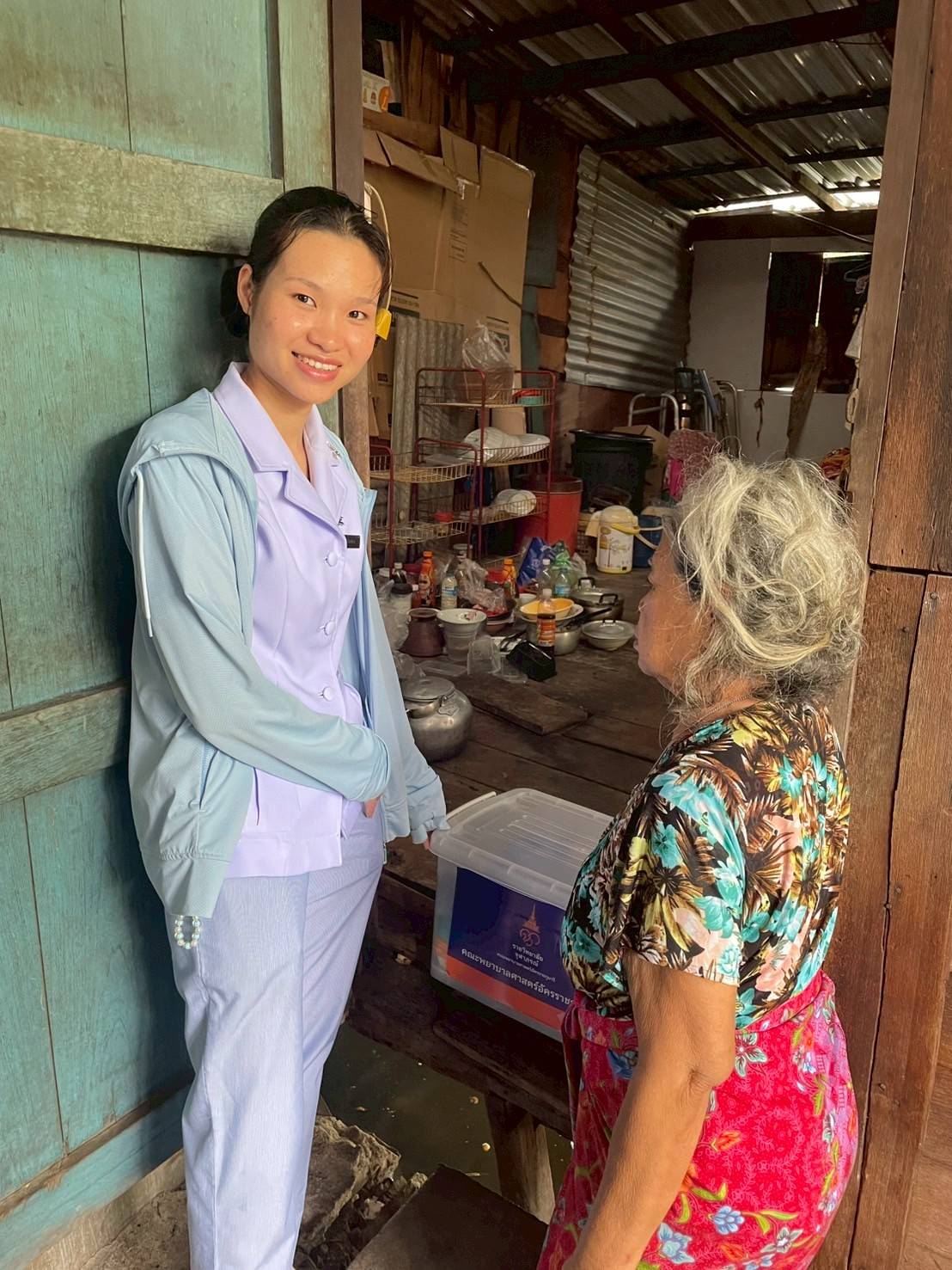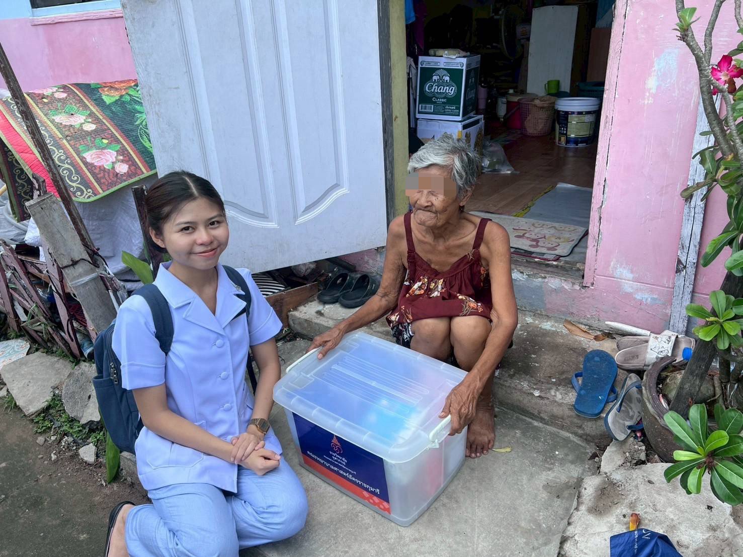 เมื่อวันจันทร์ ที่ 8 กันยายน พ.ศ. 2568 คณะพยาบาลศาตร์อัครราชกุมารี ราชวิทยาลัยจุฬาภรณ์ร่วมกับงานบริการวิชาการแก่สังคม เพื่อการบูรณาการพันธกิจด้านบริการวิชาการกับการเรียนการสอนในรายวิชา พยชช 14810 ปฏิบัติการพยาบาลสุขภาพชุมชน ให้กับนักศึกษาหลักสูตรพยาบาลศาสตรบัณฑิต ชั้นปีที่ 3 ภาคการศึกษาที่ 1 ปีการศึกษา 2568 โดยได้ดำเนินโครงการพยาบาลศาสตร์อาสา เจ้าฟ้าจุฬาภรณ์เพื่อผู้มีปัญหาสุขภาพและด้อยโอกาสในชุมชนเขตหลักสี่ตามพระดําริองค์ประธาน ราชวิทยาลัยจุฬาภรณ์ ณ ชุมชนรุ่นใหม่พัฒนา เขตบางเขน ซึ่งชุมชนนี้เป็นชุมชนริมคลองบางเขน ปัจจุบันบ้านเรือนเป็น “บ้านมั่นคง” การเยี่ยมครั้งนี้มีวัตถุประสงค์เพื่อประเมินปัญหา และให้การช่วยเหลือเพื่อบรรเทาความเดือดร้อน ให้แก่ ผู้สูงอายุที่พึ่งตนเองได้น้อย ผู้ป่วยติดเตียง ผู้พิการ และผู้ด้อยโอกาส พร้อมทั้งนำสิ่งของไปมอบให้กับประชาชนที่มีความยากลำบากในการดำเนินชีวิตเพื่อเป็นขวัญกำลังใจ รวมทั้งประสานงานกับเครือข่ายในพื้นที่เพื่อให้การช่วยเหลือที่เหมาะสม และยกระดับคุณภาพชีวิตของประชาชนให้ดีขึ้น นำทีมโดยอาจารย์กนกวรรณ ไชยลาภ และอาจารย์ณัฐกฤตา วงศ์ตระกลู