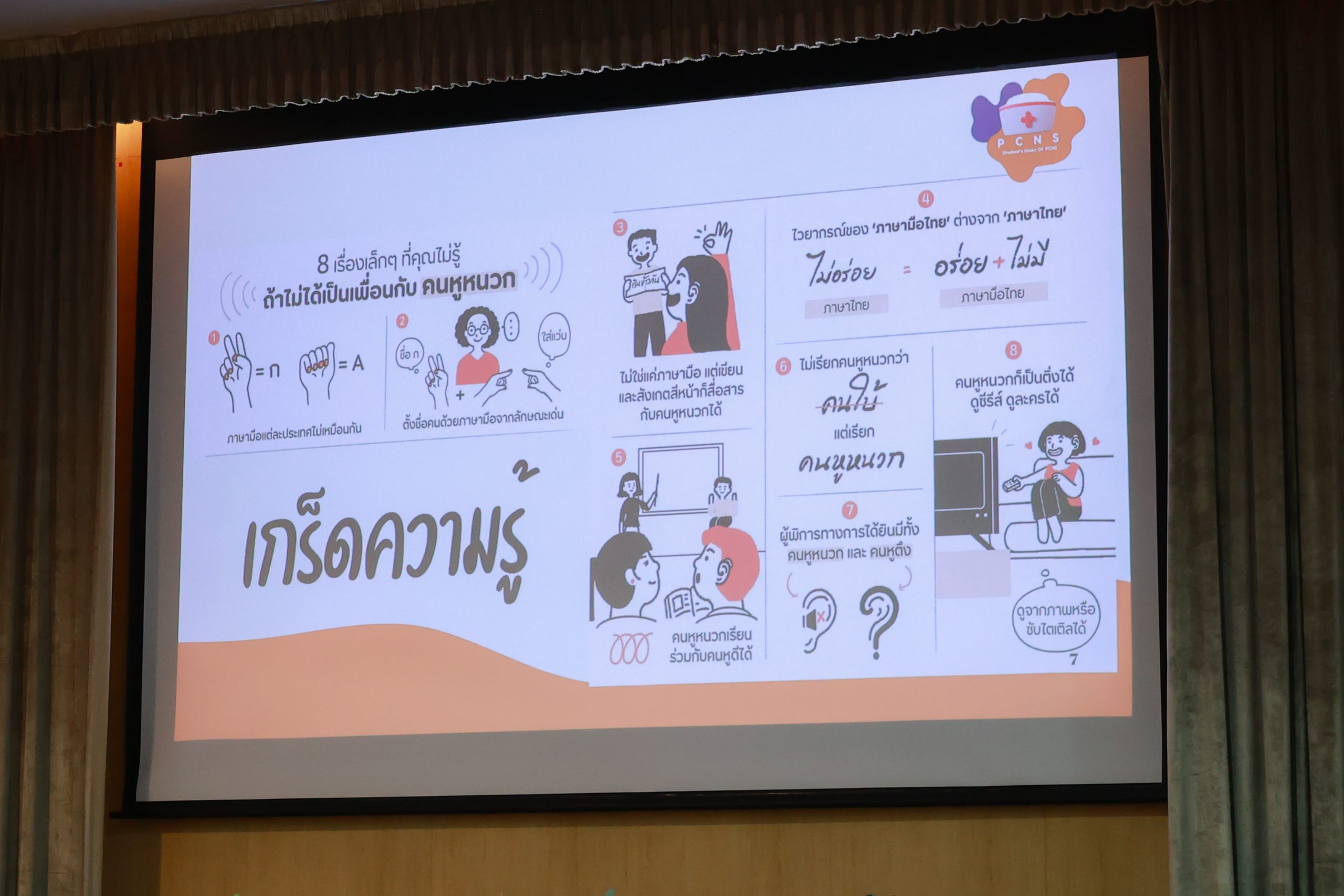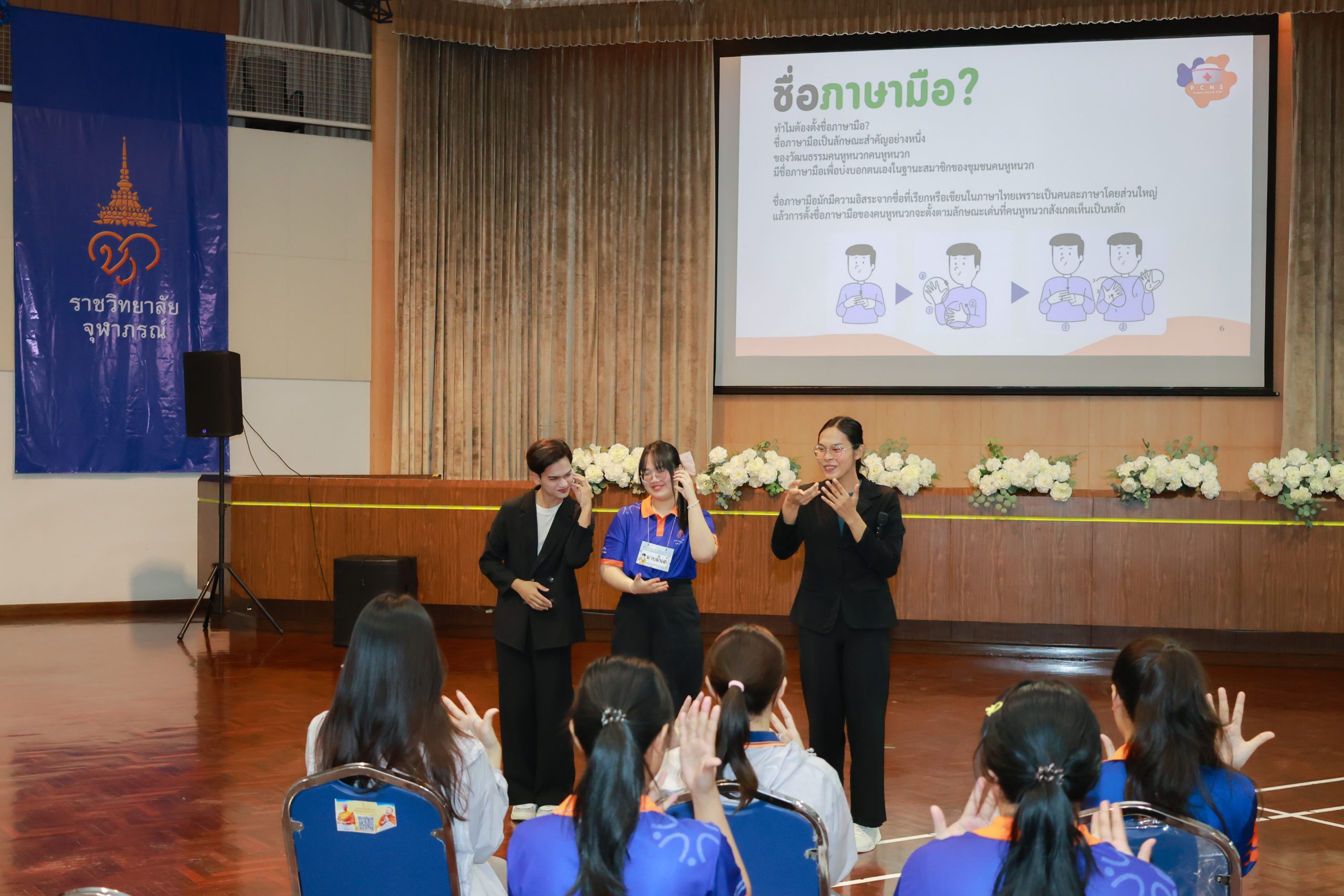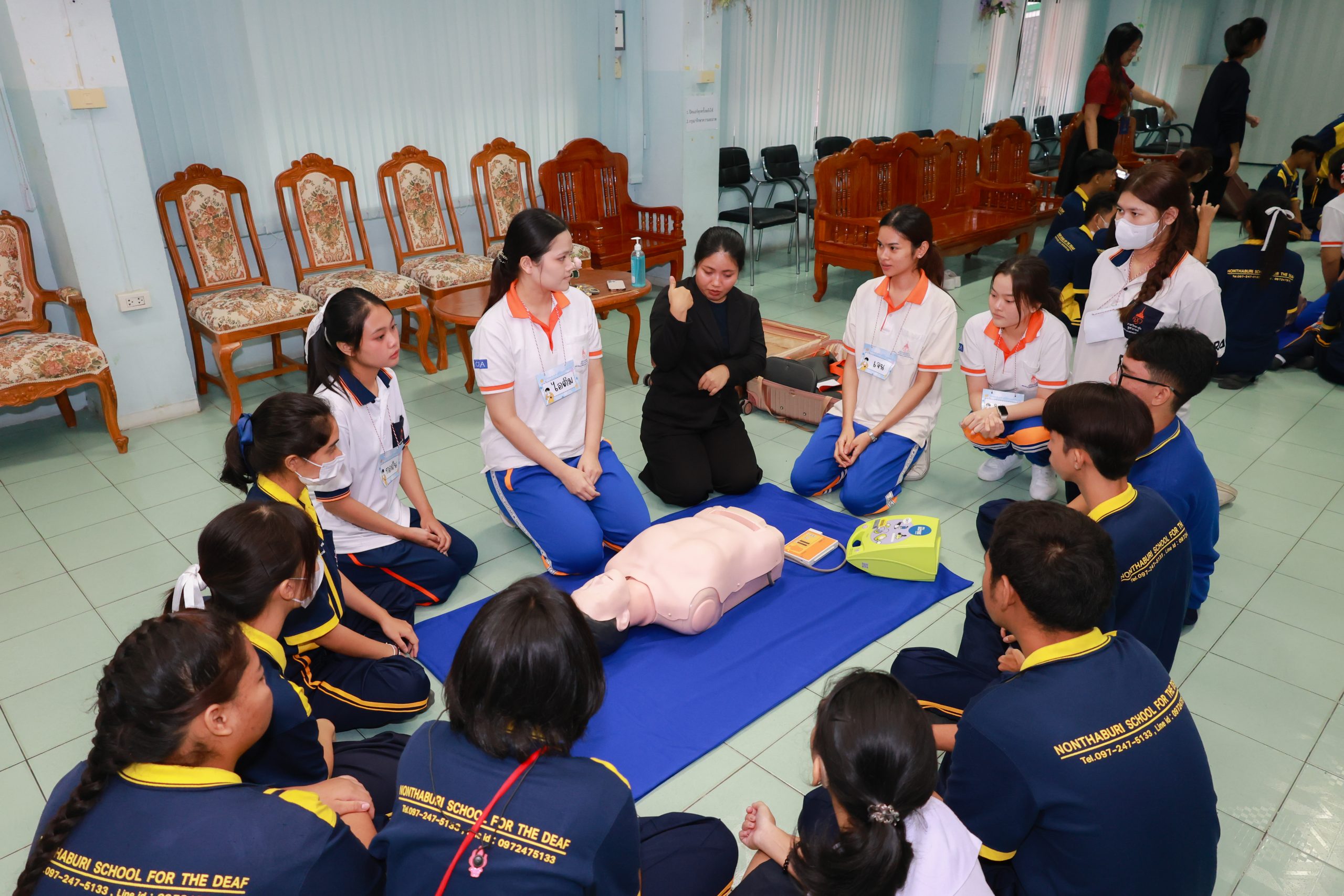 กิจกรรมนี้เป็นความร่วมระหว่างนักศึกษาพยาบาล คณะพยาบาลศาสตร์อัครราชกุมารี และวิทยากรที่ช่วยสอนภาษามือให้กับนักศึกษา จากสถาบันราชสุดา คณะแพทยศาสตร์โรงพยาบาลรามาธิบดี มหาวิทยาลัยมหิดล มีวัตถุประสงค์เพื่อส่งเสริมความรู้และทักษะการปฐมพยาบาลเบื้องต้นอย่างถูกต้องให้กับนักเรียนผู้พิการทางการได้ยิน ให้สามารถดูแลตนเองและคนรอบข้างได้เมื่อเกิดเหตุภาวะฉุกเฉิน