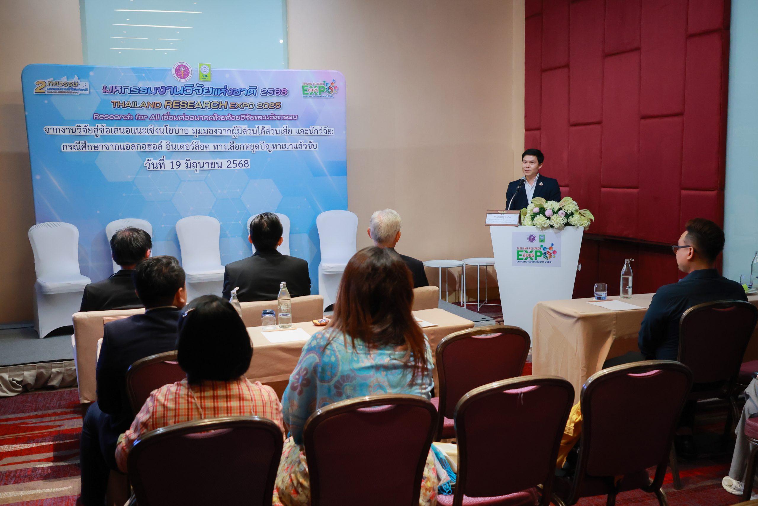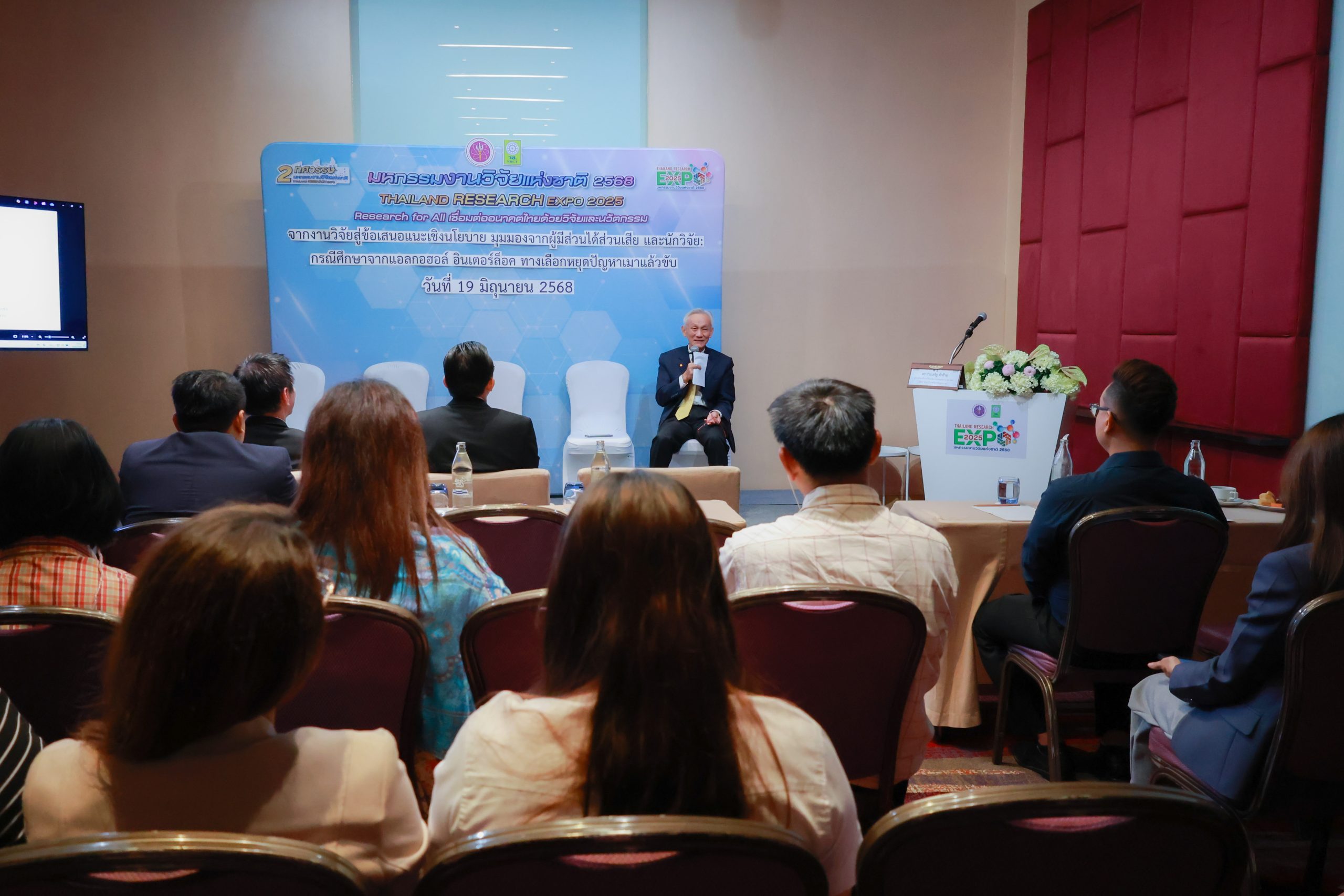 วช. ได้เชิญอาจารย์ประจำคณะพยาบาลศาสตร์อัครราชกุมารี ราชวิทยาลัยจุฬาภรณ์ เข้าร่วมประชุมกลุ่มย่อยในหัวข้อ “จากงานวิจัยสู่ข้อเสนอแนะเชิงนโยบาย มุมมองจากผู้มีส่วนได้ส่วนเสีย และนักวิจัย : กรณีศึกษาจากแอลกอฮอล์ อินเตอร์ล็อค ทางเลือกหยุดปัญหาเมาแล้วขับ” กิจกรรมนี้จัดขึ้นในวันที่ 19 มิถุนายน 2568 ณ โรงแรมเซ็นทาราแกรนด์และบางกอกคอนเวนชั่นเซ็นเตอร์ เซ็นทรัลเวิลด์ กรุงเทพฯ ภายในงานมีการปาฐกถาเรื่อง “เมาแล้วขับความสูญเสียของประเทศไทยในมุมมองของนักกฎหมายอาญา” โดยศาสตราจารย์พิเศษ จรัญ ภักดีธนกุล อดีตตุลาการศาลรัฐธรรมนูญ