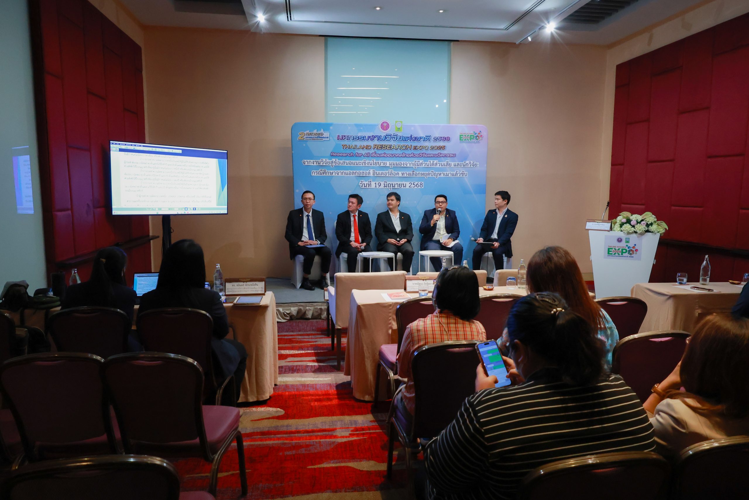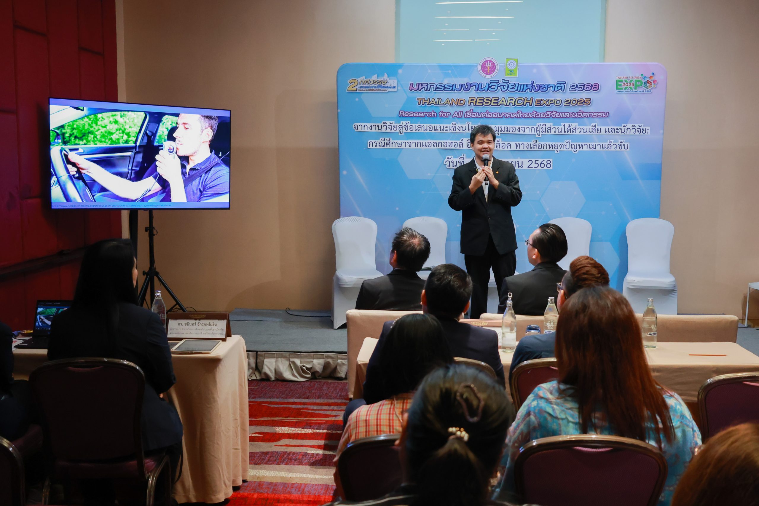– การอภิปรายเรื่อง “จากงานวิจัยสู่ข้อเสนอแนะเชิงนโยบาย มุมมองผู้มีส่วนได้ส่วนเสียและนักวิจัย: กรณีศึกษาจากแอลกอฮอล์อินเตอร์ล็อคทางเลือกหยุดปัญหาเมาแล้วขับ” โดย อาจารย์ ดร.ชนินทร์ จักรภพโยธิน และ อาจารย์ณัฐพล สิทธิพราหมณ์ มหาวิทยาลัยราชภัฏวไลยอลงกรณ์ ในพระบรมราชูปถัมภ์