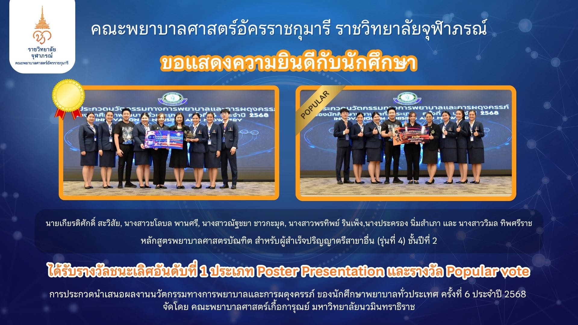 ขอแสดงความยินดีกับนักศึกษา ได้รับรางวัลชนะเลิศอันดับที่ 1 ประเภท Poster Presentation และรางวัล Popular vote