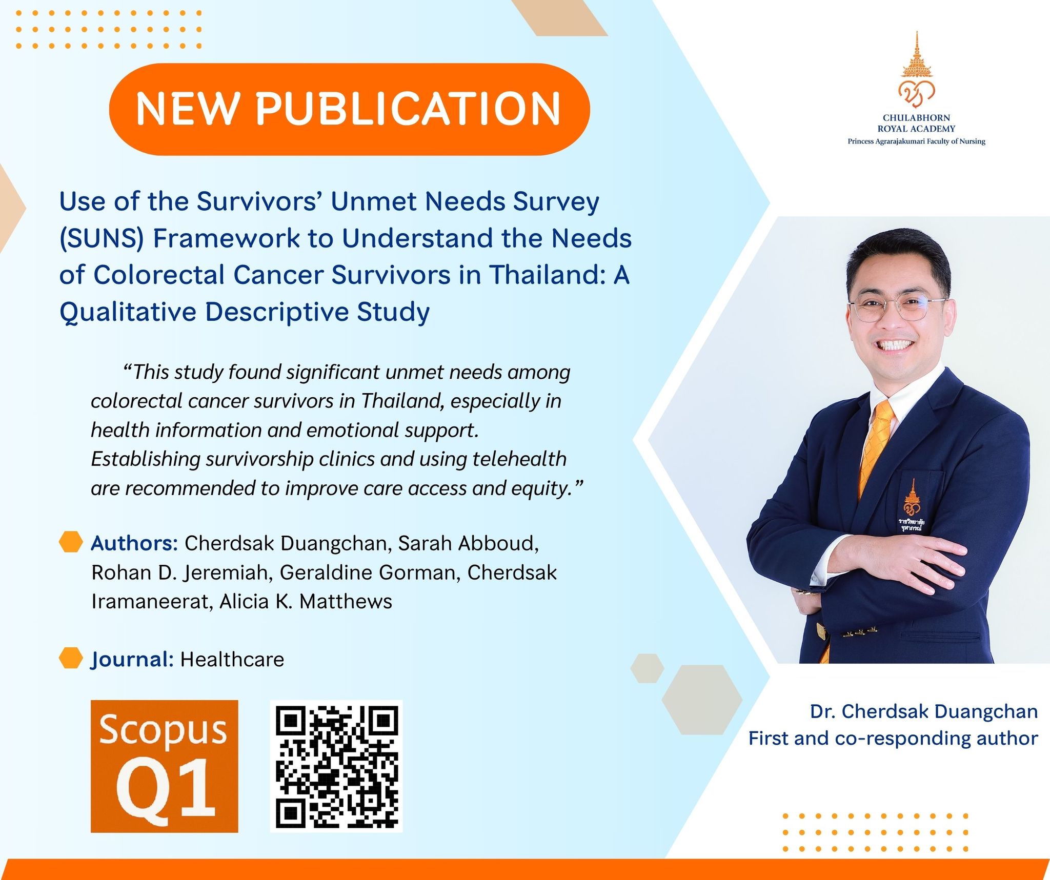 🌟 New Publication Alert! 🌟Title: Use of the Survivors’ Unmet Needs Survey (SUNS) Framework to Understand the Needs of Colorectal Cancer Survivors in Thailand: A Qualitative Descriptive Study