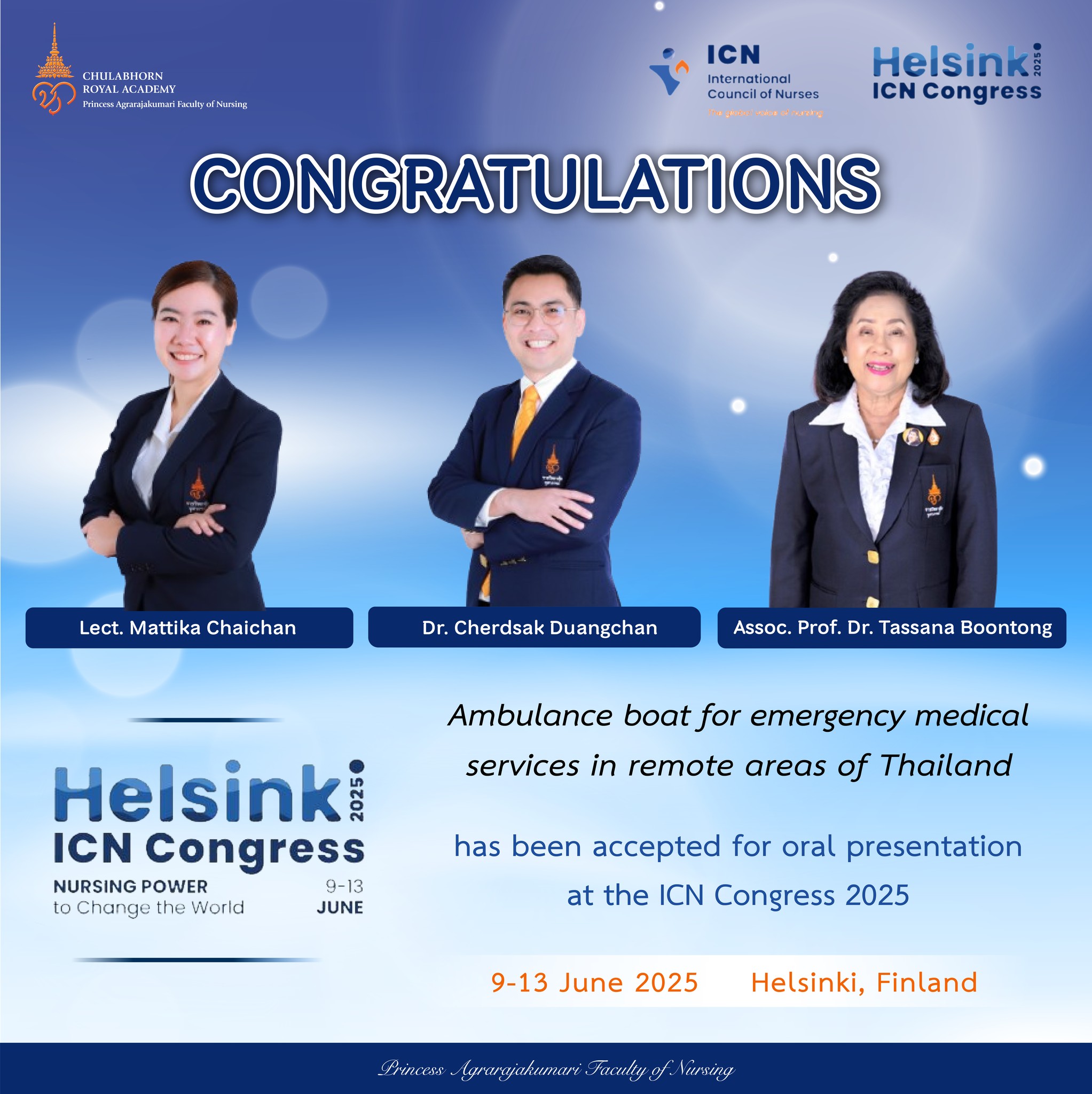 Congratulations to our Dean and faculty members for having their research abstracts accepted for oral and e-poster presentations at the ICN Congress 2025 in Helsinki, Finland, from June 9–13, 2025!