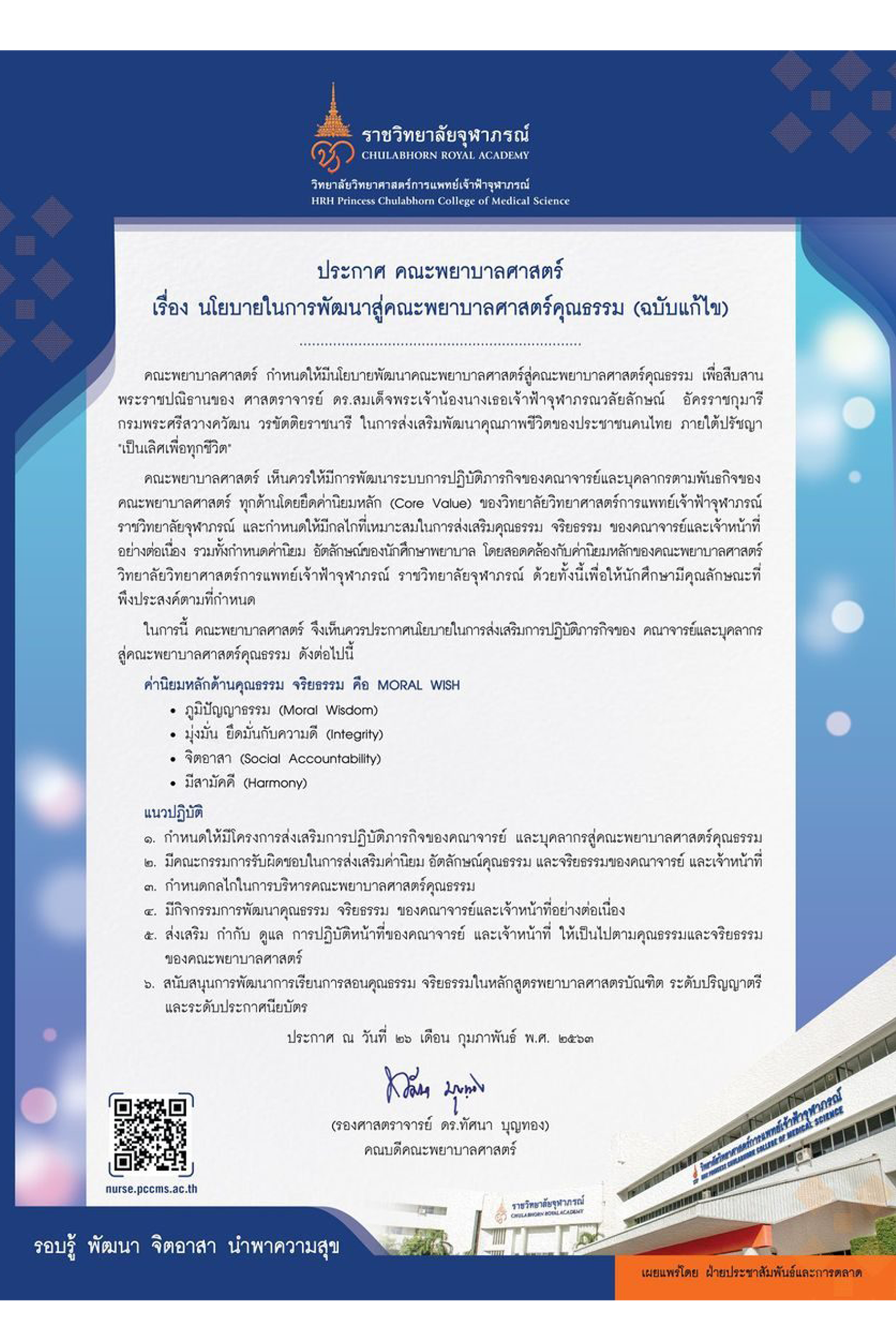 นโยบายการพัฒนาสู่คณะพยาบาลศาสตร์คุณธรรม
